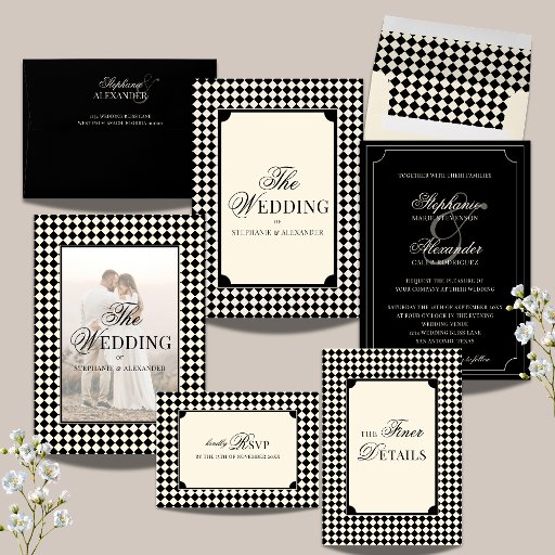 Vintage Black Ivory Checkered Old Money WeddingDesigned by Jen Mercado