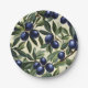 Elegant Olive Branch Pattern with Deep Blue Olives Paper Plate