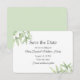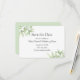 Save the Date card with green watercolor olive branch for wedding celebration.