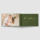 This elegant wedding guest book is perfect for stylish, modern weddings. The design features "the wedding of" displayed in gold foil calligraphy with your names and wedding date shown below on an olive green background. Add your custom text to the spine of the minimalist wedding guest book. The back of the foil guest book features your horizontal engagement photo.