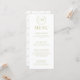 Enhance the charm of your wedding reception with these sophisticated and stylish olive green and white tulip floral wedding menu cards. Decorated with delicate floral pattern and showcasing a timeless floral wreath embellished with the bride and groom's monogram.