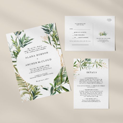 Elegant Olive Greenery Seal And Send All In One Invitation