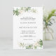 This elegant olive greenery wedding invitation is perfect for your modern summer boho wedding. It is designed with watercolor emerald green and sage-coloured leaves, touches of botanical gold, blush pink olive flowers, and simple black vintage typography. All these elements combine for a beautiful bohemian feel.