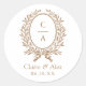 Elegant Olive Leaf Crest Gold Wedding Monogram Classic Round Sticker