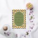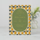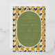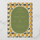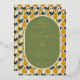 This elegant wedding invitation features a charming pear pattern in shades of yellow and orange, accented with green leaves on a cream background. The central oval frame is filled with a muted olive-green colour, providing a sophisticated backdrop for the neatly organised text in classic serif fonts. The design exudes a warm, inviting atmosphere, perfect for celebrating a formal event. Customisable elements allow for personalisation, making it ideal for couples looking to add their unique touch to their special day.