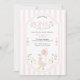 Celebrate your little one’s first birthday in the sweetest way with this pink “Silly Goose” first birthday invitation. Featuring a charming watercolor goose holding soft blush balloons, surrounded by delicate floral vines and a watercolor pastel pink stripes, this design is ideal for a girl’s first birthday. Personalize with your child’s name, event details, and RSVP information to create a keepsake that guests will adore.