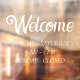 Elegant Open Hours | White Script Time Opening Window Cling
