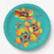 Elegant Orange Flowers - Aqua- Customise your Own Paper Plate
