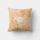 Elegant Orange Marble Monogram Faux Gold Glitter Cushion