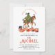 Get ready to celebrate a royal birthday with a mediaeval twist! This whimsical invite features a dashing knight in a green cape riding a noble steed. The birthday child's name shines in elegant orange typography, styled to match the grandeur of a knight’s cape. The party details—time, date, and location—are presented in a sleek black font for easy readability against a crisp white background. Flip it over, and you’ll find a burnt orange backdrop, continuing the royal theme. Perfect for a day of knights, horses, and adventure, this design guarantees an unforgettable mediaeval bash! Ideal for kids’ birthday parties with a fun, mediaeval twist.