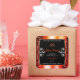 Matching a shimmery orange red frame and cute hearts graphic on a black background.