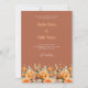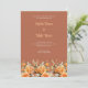 This beautiful wedding invitation will make your guests feel like they are entering a serene garden. The design features a charming bottom border of orange roses and greenery, perfectly capturing the essence of a peaceful garden setting. The brown background of the invitation adds a touch of sophistication to the design, making it a great option for couples who are looking for something unique and stylish.