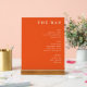 This elegant wedding menu card features a clean, minimalist design with a warm orange background and crisp white serif typography. The layout is organized into three sections—Beer, Wine, and Spirits—each clearly labeled for easy reading. Its sophisticated style conveys a professional and inviting atmosphere, perfect for setting the tone at your special event. The balanced composition and effective use of negative space enhance clarity, making it an ideal choice for couples looking to present their beverage options in a stylish and straightforward manner.
