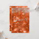 Elegant orange Sweet 16 birthday party invitation for girls with silver string lights and sparkling bokeh with glittery party lights.