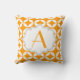 Elegant orange, white geometric pattern throw/toss decorative accent pillow design with a grey frame and your monogram featuring a modern yet with a vintage/retro flair geometric pattern. This monogrammed girly accent pillow design is completely customisable.