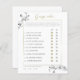 Branches of white orchids, hand-drawn in graphite pencil, decorate this simple and elegant custom bridal shower "Guess who..." game card that features a delicate, classic gold frame and modern script calligraphy. Personalise it fully, with the bride's name and the date and each of the ten questions.
