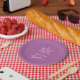 Simplistic paper plates with an elegant orchid flower on a simple bold purple background. Personalise this minimal feminine design by adding the name of the party girl.