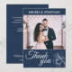 This romantic and delicate orchids photo thank you card is perfect for an elegant wedding. The floral design features a sophisticated white orchids line drawing over a classic Prussian Blue background. Personalise the card with your favourite wedding day picture and your names on the front, and your custom thank you message, date, and names on the back of the card.