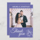 This romantic and delicate orchids photo thank you card is perfect for any elegant wedding. The floral design features a sophisticated white orchids line drawing over a classy contemporary periwinkle purple background. Personalise the card with your favourite wedding day picture and your names on the front, and your custom thank you message, date, and names on the back of the card.