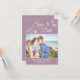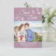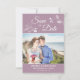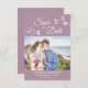 Elegant and romantic Save The Date photo card, featuring a beautiful and delicate white orchids floral line drawing on the upper part, over a classy dusty purple background. Easily personalizable by adding one of your favourite engagement horizontal pictures, and by editing the template fields on the purple lower band with your names, date, and location in a modern and simple white all-caps font.