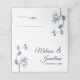 The front features a beautiful and delicate dark blue orchids line drawing design, with the customisable bride and groom's names and wedding date. The back features the same elegant orchids design with two lines to write your guest's name and table number (by hand).