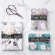 Chic wrapping paper sheets featuring a delicate and elegant orchids pattern over three different background colours (white, lavender, and turquoise).