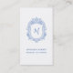Elegant Ornamental Roses Crest Blue Monogram Business Card