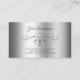 Make a lasting impression with this elegant and luxurious business card design featuring pretty silver ornate corner borders with cute hearts on a shimmery silver background.