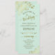 wedding programornate floral curls and swirlslacy script calligraphystylish sophisticated and chicceremony and bridal partysimple elegant stylefancy decorative filigree cornerswelcome and thank youneo mint green and goldfrilly golden faux foil accents