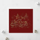 Elegant, unique and ornately decorative 'Tis the Season typography with swirls, leaves and calligraphy flourishes in a gold faux-sculpted style on bold red background. Back features editable text fields.