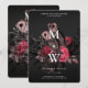 Elegant Owl Couple Gothic Wedding Dark Burgundy Pink Floral Rose Monogram Wedding Invitation