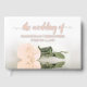 This beautiful wedding guest book exudes romance, elegance, class, and style. It features a photo of a single long-stemmed pale peach or very light orange coloured rose lying on its side mirrored in a pool of water with elegant foil lettering reading "the wedding of" with your names and wedding date. Wonderful way to create a lasting memory of your special day.