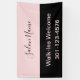 A banner lets everyone know your beauty salon is open and welcomes walk-ins. The pale pink text at the bottom says 'Walk-Ins Welcome'. The pink text is on a black stripe. A pink stripe at the top has an elegant black script for the beauty salon's name. Pink display text is also available for the salon's phone number.