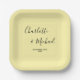 Elegant Pale Yellow Script Minimalist Wedding Paper Plate