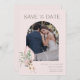 This tropical beach wedding save the date features a modern arch design framed with elegant palm leaves and soft golden tones—perfect for sunset ceremonies, coastal vows, and destination wedding dreams.