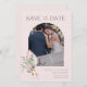 This tropical beach wedding save the date features a modern arch design framed with elegant palm leaves and soft golden tones—perfect for sunset ceremonies, coastal vows, and destination wedding dreams.
