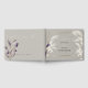 The Wedding of (Your Names ) on the front cover of this beautify swaying cream coloured pampas grass and purple anthurium leaves - hand written calligraphy shows well on this mushroom taupe background, all surrounded by a sparkly double gold frame. Wedding date and amethyst anthurium flowers on back. Script calligraphy combined with a minimalist, contemporary style text layout makes it a trendy modern wedding suite. This is part of a wedding stationery collection with matching wedding accessories. Original artwork by © WhimsicalArtwork™ created for the BarefootBride™
