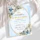Ideal for classic, modern, garden, or elegant Quinceañera themes, this invitation combines delicate blue hues with warm gold details to achieve a look that feels both sophisticated and youthful. The greenery and eucalyptus bring freshness and balance, while the gold accents add just the right amount of sparkle for a meaningful 15th birthday celebration. Whether you are planning a formal Quinceañera, a traditional fiesta, or an intimate family gathering, this invitation sets a beautiful and memorable tone.