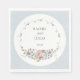 This romantic and elegant design features soft pastel rose and wildflower wreath in shades of blush pink, white, pale violet and gold on a light mint green background with white centre element. This lovely design also includes flowing text graphics in a custom calligraphy font and text field for your names. The background colour is also customisable.