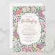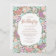 This beautiful real foil baby shower invitation features hand drawn butterflies and floral garden elements. A colour palette of green, pastels, and real gold foil create a whimsical, dreamy look. The back is left blank / white, but can be customised to any colour.