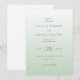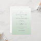 This wedding invitation features a minimalist and elegant design with a soft, pastel green gradient background that transitions from light to dark. The layout is clean and spacious, highlighting the text in a hierarchical manner using a mix of delicate script and clean serif fonts for a modern yet classic look. The overall mood is serene and sophisticated, perfect for celebrating a momentous occasion. Customizable elements allow personalization while maintaining an understated elegance, making it ideal for couples seeking a tranquil and refined aesthetic for their special day.