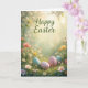 Elegant Pastel Happy Easter with Flowers and Eggs Card