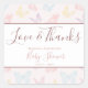 Delight your baby shower guests with these whimsical butterfly stickers. The design features whimsical typography saying "Love and thanks", but this message can be changed to suit your needs. You can also personalise these stickers with the mother-to be's name and the date of the baby shower. The design features a chic, pastel pink background with a butterfly pattern consisting of assorted butterflies in assorted pastel colours.