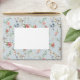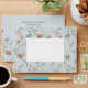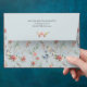 This romantic and elegant design features soft pastel roses and wildflowers in shades of blush pink, white, pale violet and gold on a light mint green background with white centre element. The background colour is also customisable.