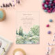 An elegant pastel watercolor garden wedding design featuring soft florals, lush greenery, and a tranquil pond scene. Created for couples planning a romantic outdoor garden celebration, this fine art watercolor style is perfect for spring and summer weddings with a light, airy aesthetic.