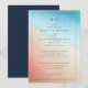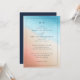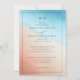 This elegant wedding invitation features a serene watercolor design with a gradient transitioning from light blue to warm peach, creating a soft and inviting atmosphere. The minimalist layout emphasises clarity and sophistication, using a mix of serif and script fonts for a touch of formality and grace. Perfect for couples seeking a blend of modern minimalism and traditional elegance, this design is ideal for celebrating a special union in style.