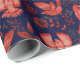 Elegant Pattern Of Red Birds, Plants On Blue Wrapping Paper