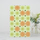 Scrapbook paper featuring an elegant design of red floral designs and green diamonds.