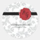 This design features elegant vintage leaf pattern and personalised wax seal image. The damask grey leaf patterned background contrasts against the black ribbon and red wax seal. The combination of grey, red, black and white colours create a sophisticated, trendy and chic style. Elegant wedding sticker design with modern elements. The simple setup of the typography gives it a distinct style. Matching wedding invitations and other stationery items are also available.