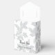 This design features elegant vintage leaf pattern and personalised wax seal image. The damask grey leaf patterned background contrasts against the black ribbon and red wax seal. The combination of grey, red, black and white colours create a sophisticated, trendy and chic style. Elegant wedding favour box design with modern elements. The simple setup of the typography gives it a distinct style. Matching wedding invitations and other stationery items are also available.